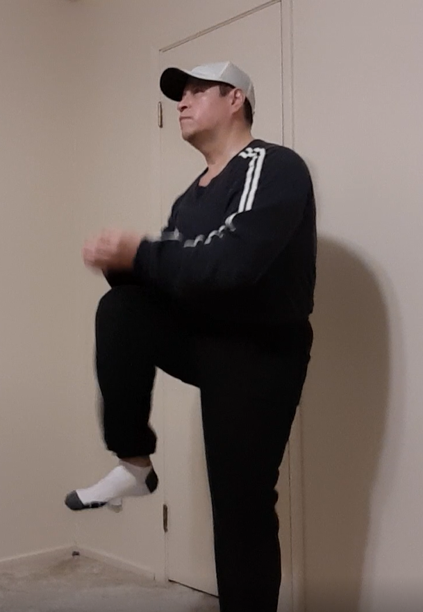 Downward pulling motion while lifting your knee