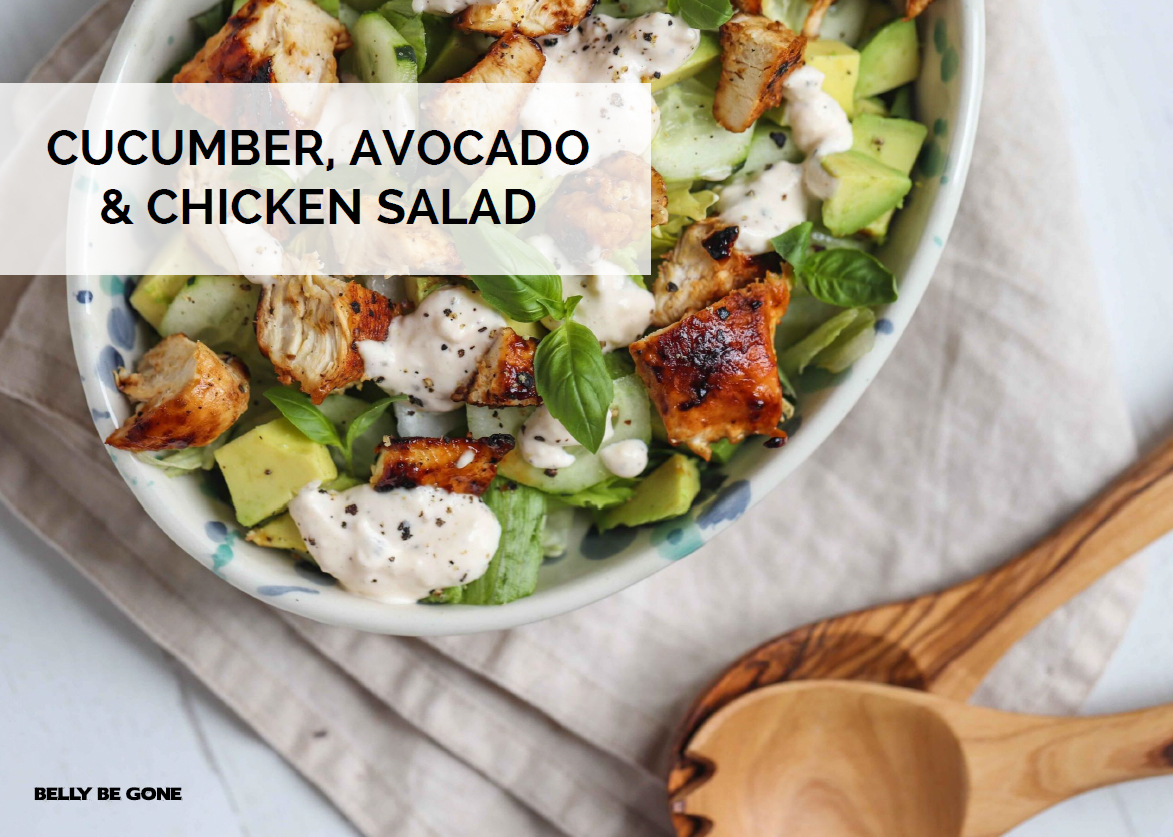 If you enjoyed the cucumber avocado and chicken salad recipe you'll love the Belly Be Gone Recipe book! The recipes are all high protein and low carb plus they taste awesome!