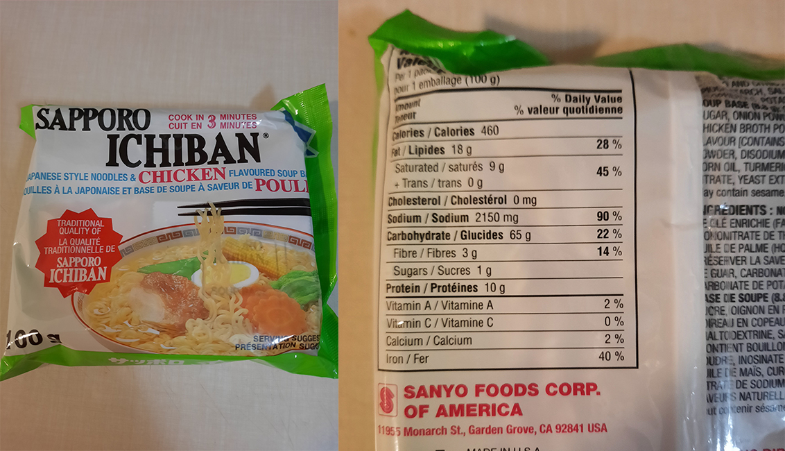 If you take a look at the sodium levels for Sapporo Ichiban noodles it is a whopping 2,150 mgs per serving! That is over the recommended daily sodium allowance for women!! For one serving!!! This is way too much and something that will keep your weight on (or gain weight) and keep you fat.