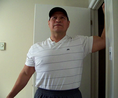 The doorway chest stretch is a great way to stretch the entire chest region and front shoulder. In addition, it will also help stretch the biceps (front of the upper arm). This is a good stretch to perform after you’ve warmed up and are ready to exercise your upper body.