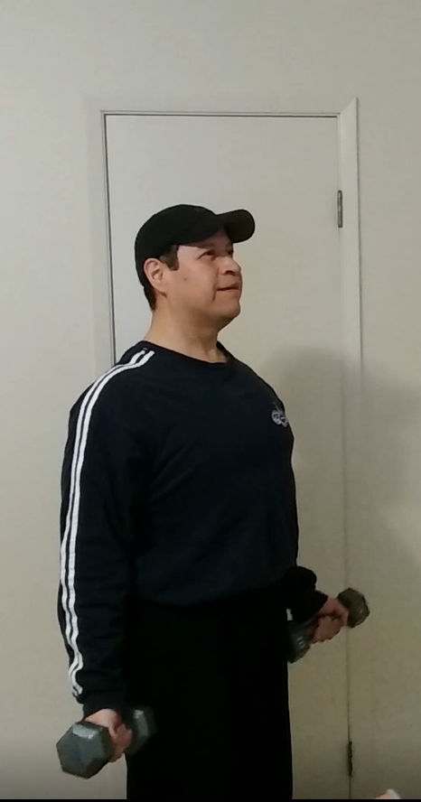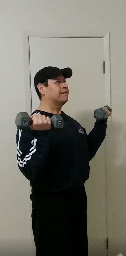 Dumbbell curl to shoulder press exercise - Curl position
