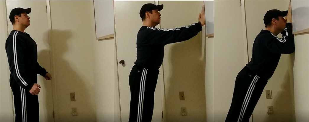Position for the wall push up exercise