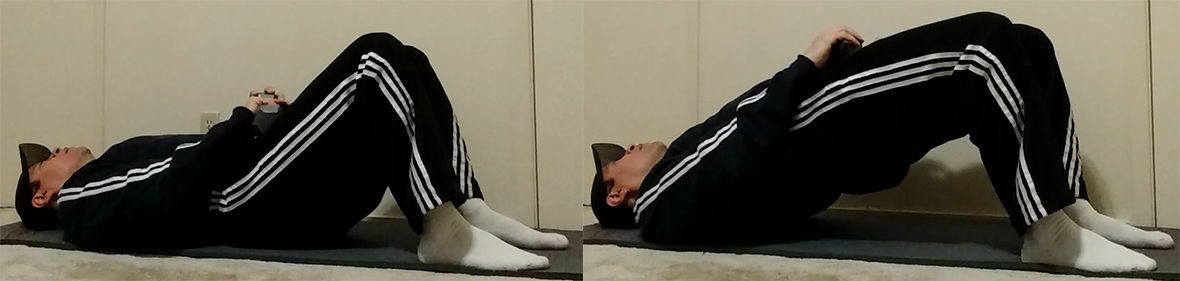 Hip thrusts: Breathe in as thrust upwards and breath out as your lower your