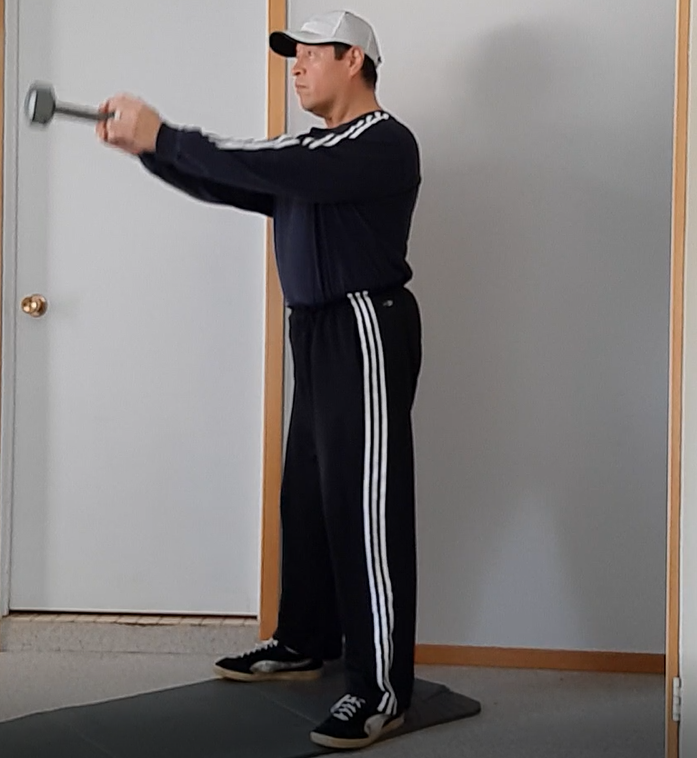 - Do not round your shoulders as this will cause you to lose posture. Keep your shoulders retracted and arms straight (in a stationary position). Your arms should “swing” the weight.