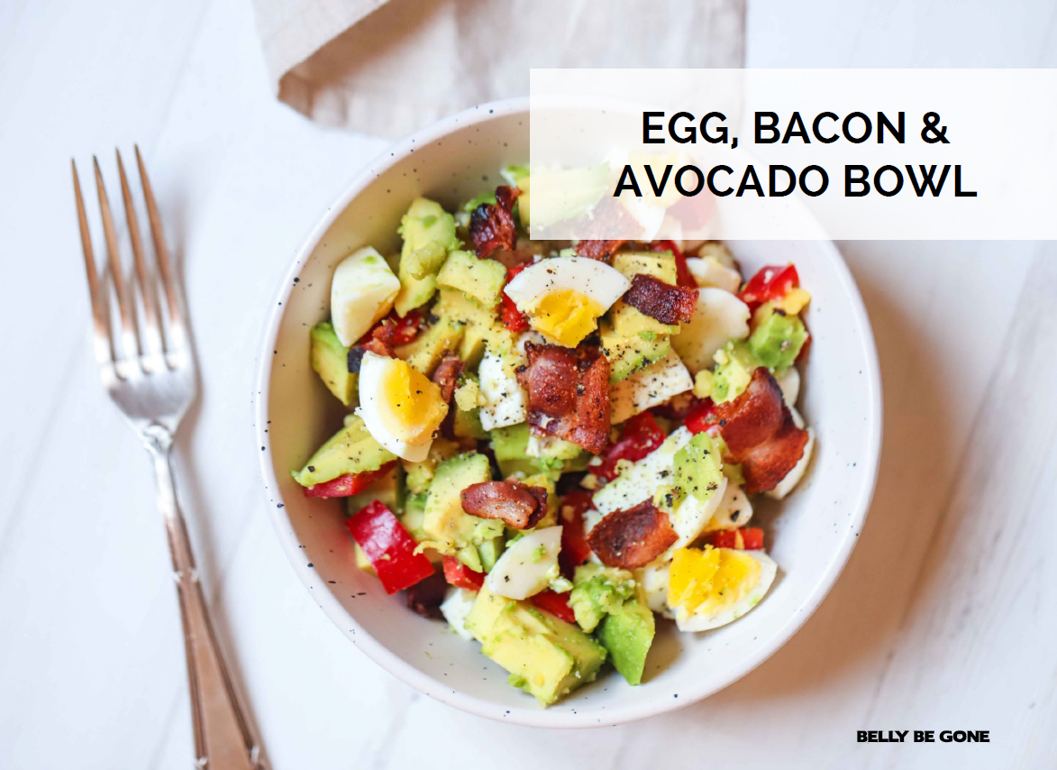 The egg, bacon and avocado breakfast bowl has been taken from the Belly Be Gone Recipe Book. For those of you who are looking for high protein, low carb recipes that are not only easy to make but super delicious, this recipe book is for you!