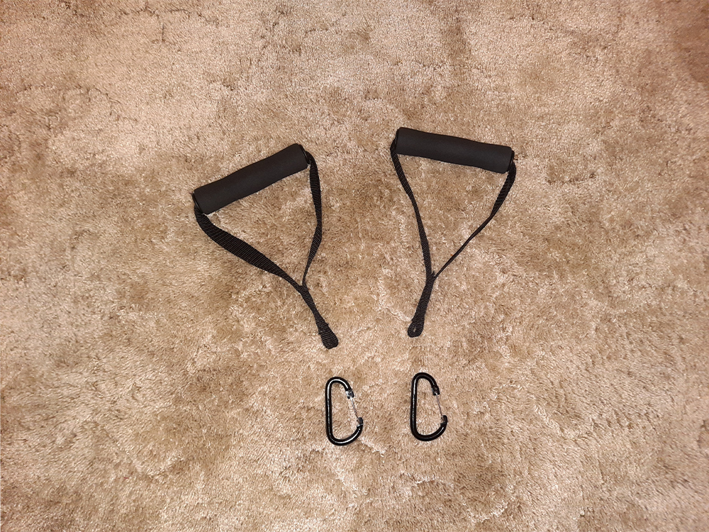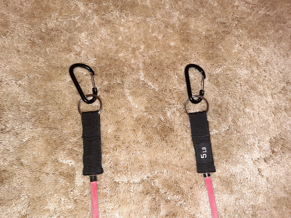 4) Clip the ends of the resistance bands to the ends of each handle.