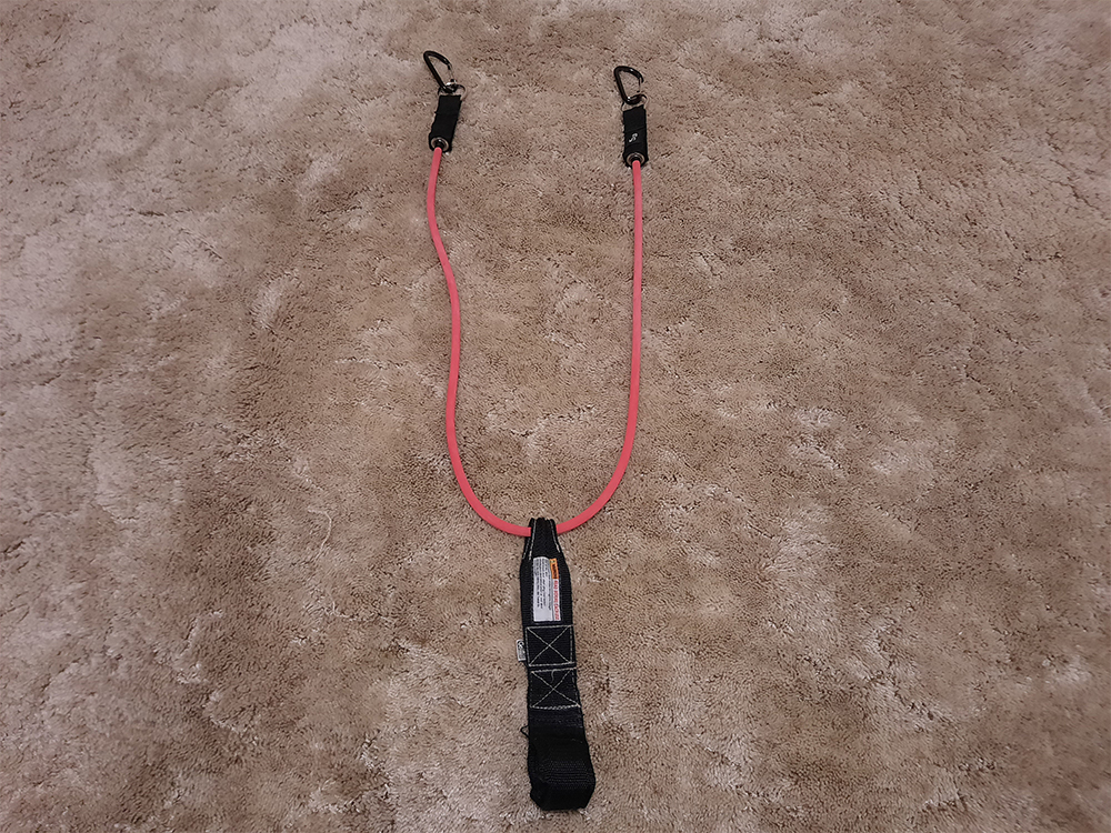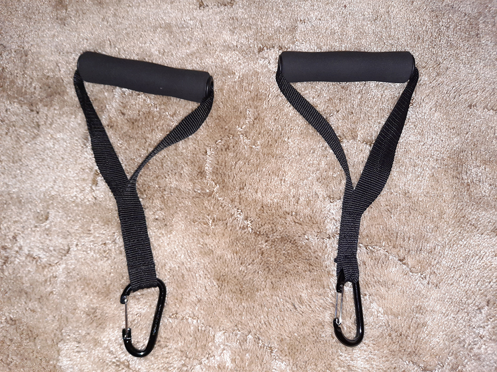 The ankle strap is pretty handy to have. You slip your foot through the one end and clip the other to the resistance band and you can do all kinds of leg exercises. You can perform leg curls, leg extensions, kickbacks, lateral abduction, kicks, and a host of others. It’s a very handy piece of fitness equipment and easy to use. The only complaint I have is that if you are wearing shorts and no socks, the vinyl may dig into your skin. I usually put socks on and either have my jogging pants or small towel around my calf.