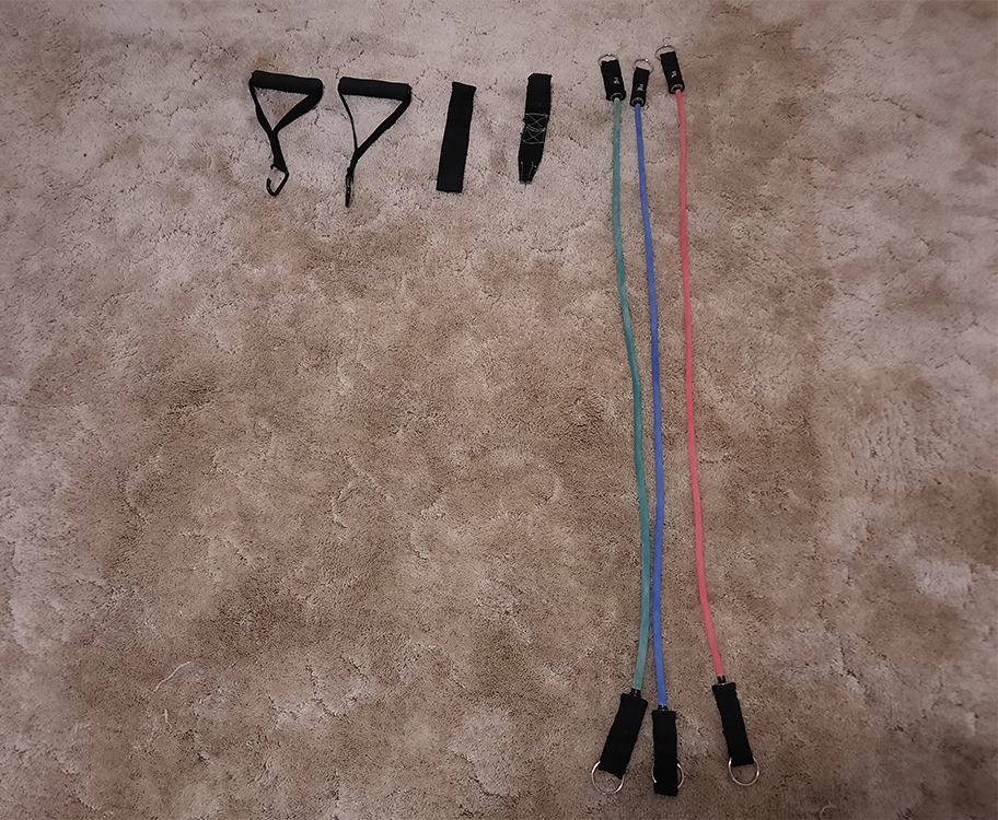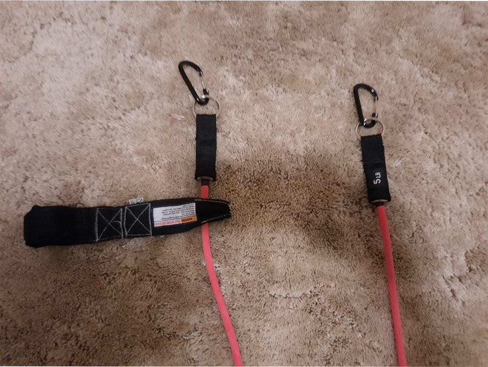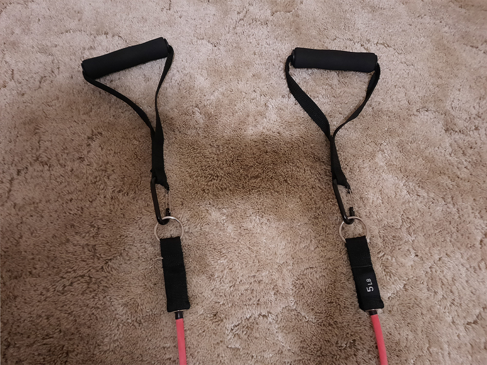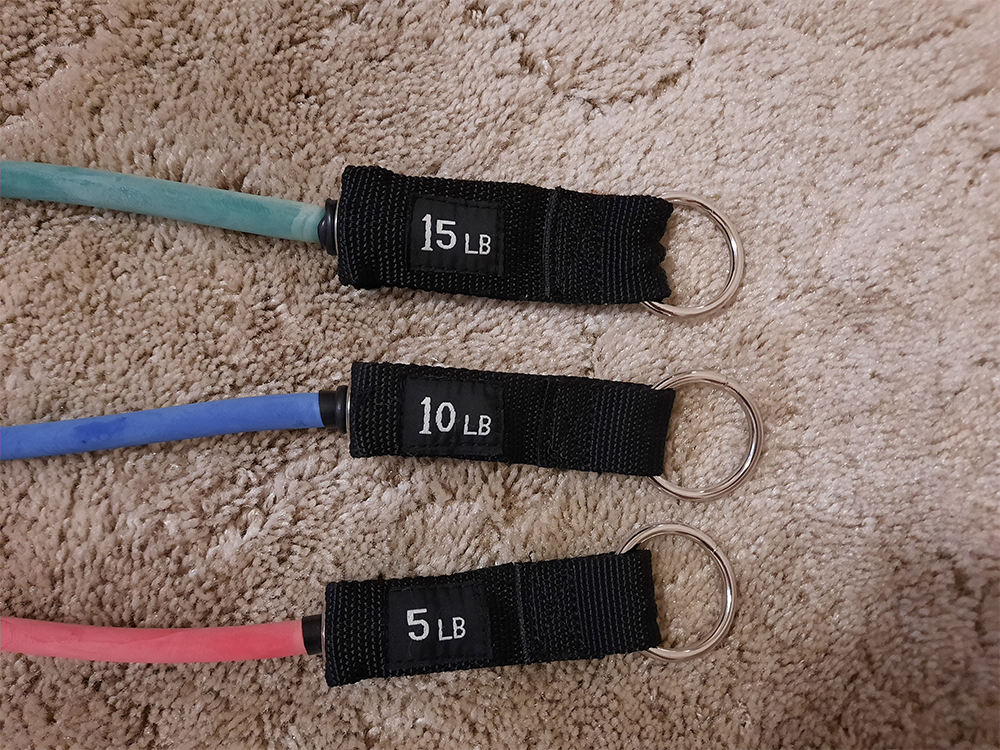 These aren’t necessarily resistance bands but “tubes”. They come in different resistance categories ranging from 5 LBS to 15 LBS. You can get resistance band sets that have 20, 30 and 40 pounds resistance bands depending on your needs. For my purposes, the 5, 10 and 15 pound set is just what the doctor ordered!