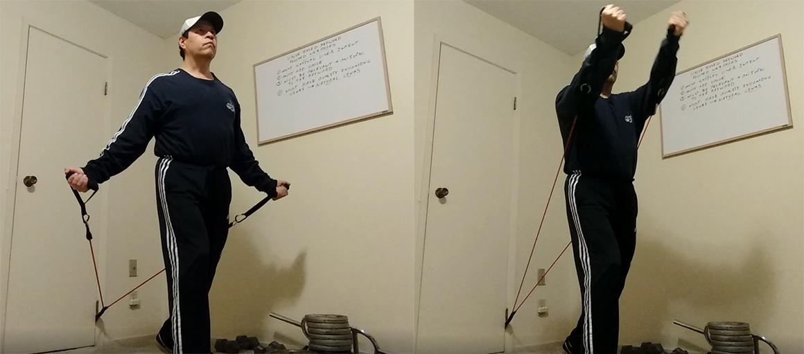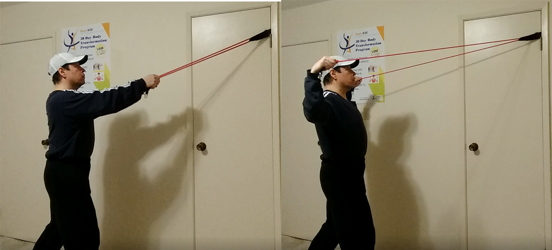 For more resistance band exercise examples, go to this page here and scroll down to “Home Resistance Band Exercises”.