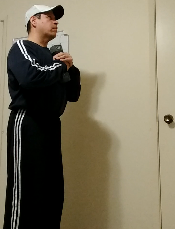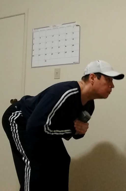 Good mornings are usually done with a barbell across your back but in this instance, we are going to use a single dumbbell holding it directly in front of our chest. What’s the difference? None really except that you will really have to concentrate on keep the dumbbell stationary and your back straight.
