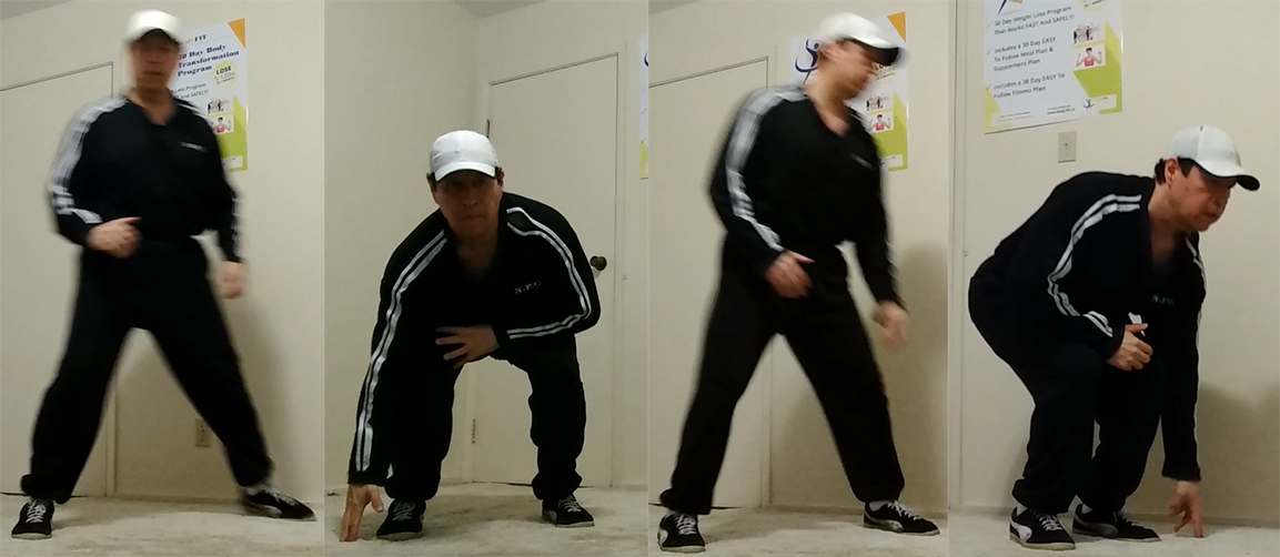 This is a more challenging low impact cardio movement so you may want to take it easy if you are new to exercise or have been on an extended lay off. Mind you, this is a low impact cardio combination that uses only your body weight and there is no skipping, jumping or hopping of any kind. However you will be reaching downwards and shifting in a lateral motion with your feet. It’s an interesting low impact cardio movement that I am sure you’re going to enjoy.