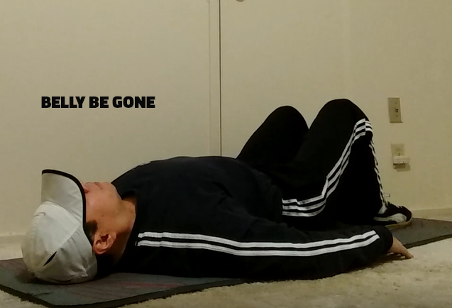 Lie on the floor with your back to the ground and knees bent. Place your arms at your sides (or on your hips) and keep your head level. Retract your shoulders back and puff your chest outwards (to properly position your torso).