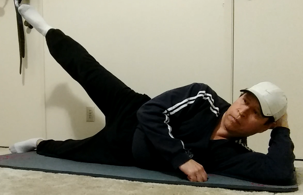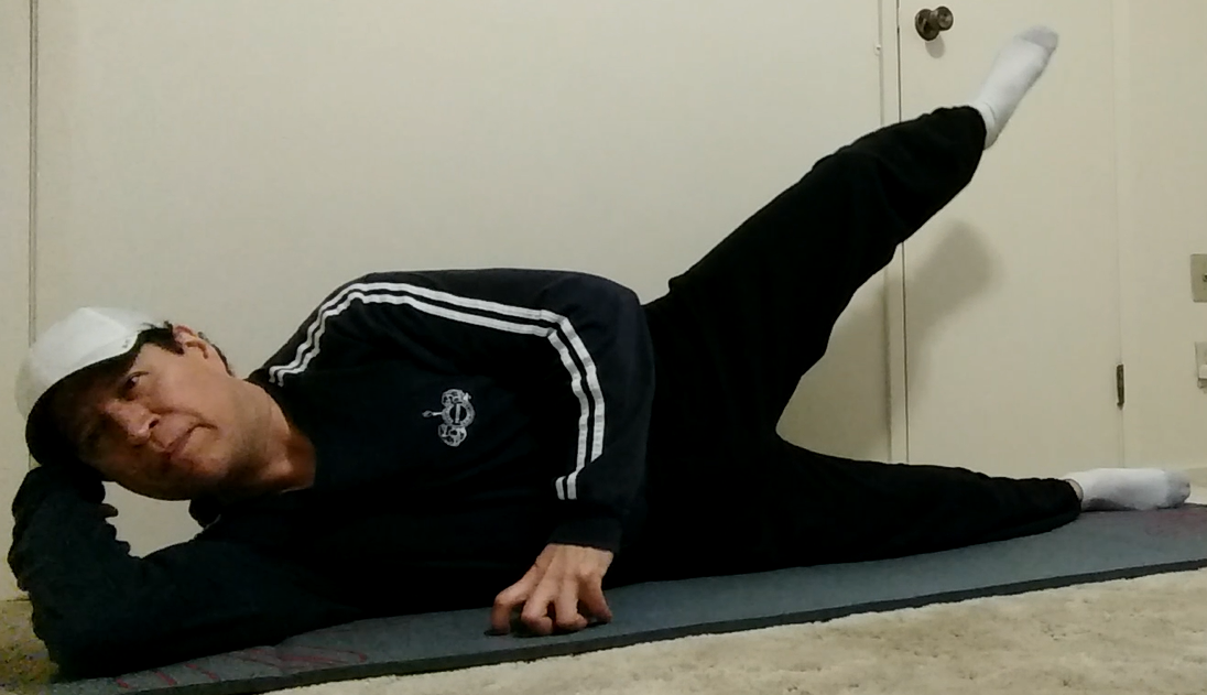 Raise your right leg until it is at 45 degree angle to the floor. Pause for a second and return your leg back to the start position. Once you’ve completed your repetitions, change positions so that you are lying on your other side. Repeat the movement for your other leg for the prescribed amount of repetitions.