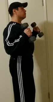 The standing dumbbell hammer curl is very similar to the standing dumbbell curl with one small variation. Instead of gripping the dumbbell with your palms up (as with traditional dumbbell curls) you are going to grip them with your palms facing each other. The effect of this grip variation is to use more brachioioradialus (the meaty upper part of your forearm) muscle.