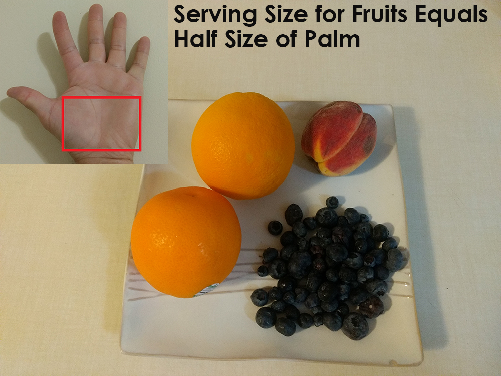 You see, our palms (not including the fingers) are our own custom food guides and are reflective of our body size. It’s a perfect food measuring tool specific for each of us. Use this guide to measure your cooked foods.