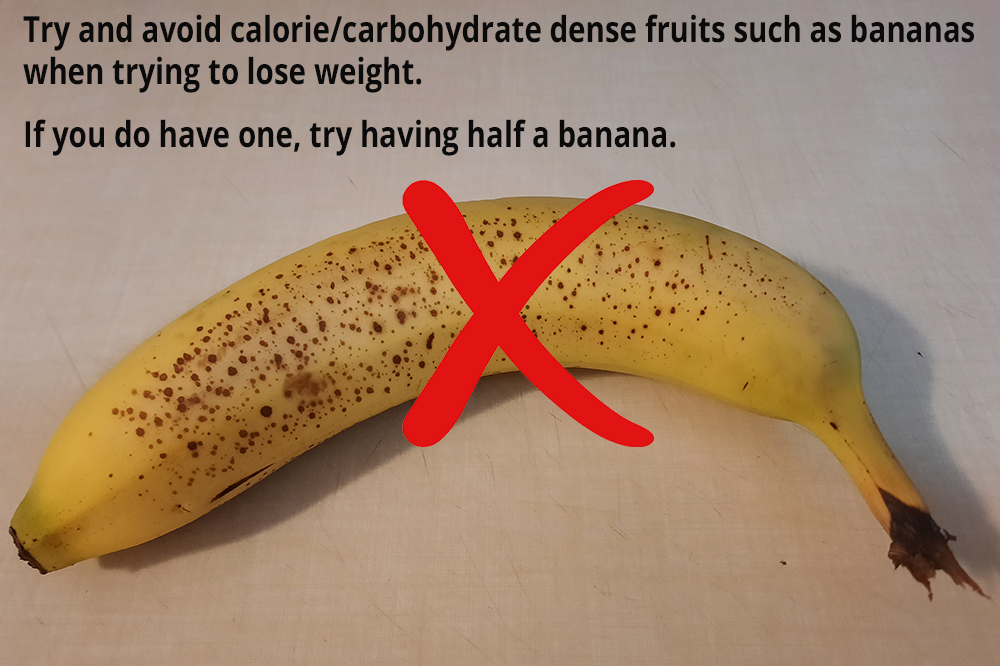 Be careful about eating calorie / carbohydrate dense fruits such as bananas when you are losing weight