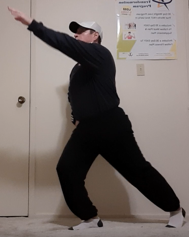 Arms raised position for the left arm and leg.