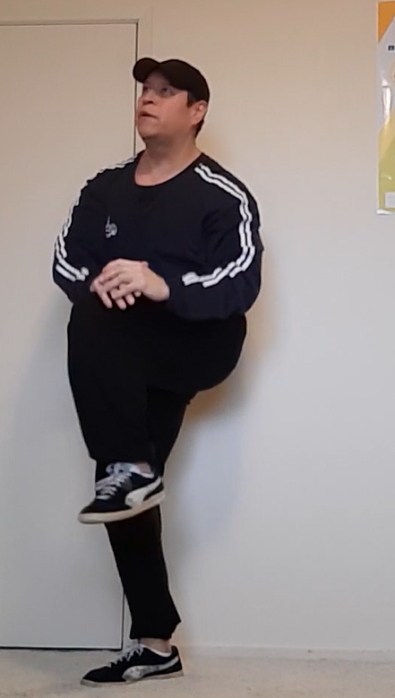 · Try not to look down or up as this will cause you to lose balance. I suggest picking a spot on the wall (that’s level with your eyesight) and stare at it for the duration of the movement.