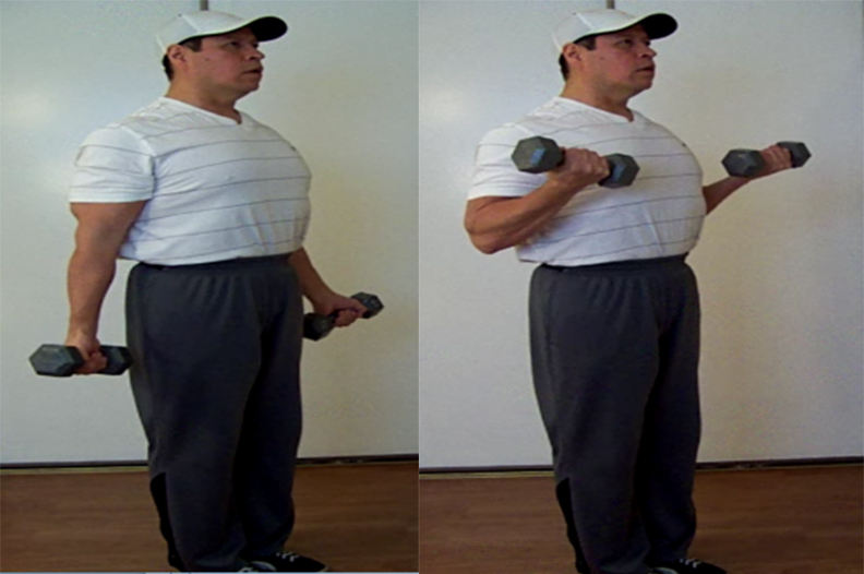 2) With no rest, immediately perform your next exercise which in this example is dumbbell curls.