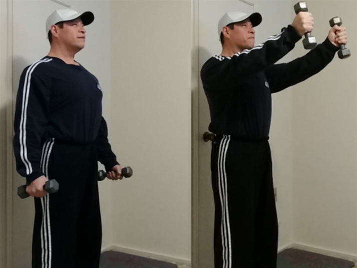 A circuit set is performing 4 or more exercises in consecutive manner with no rest in between exercises. For example, a circuit set for the upper body using dumbbells may be a follows: