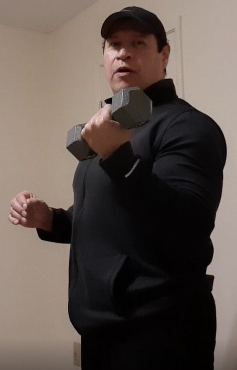 For example, let’s say we want to complete 6 repetitions using 10 pounds for the standing dumbbell curl.